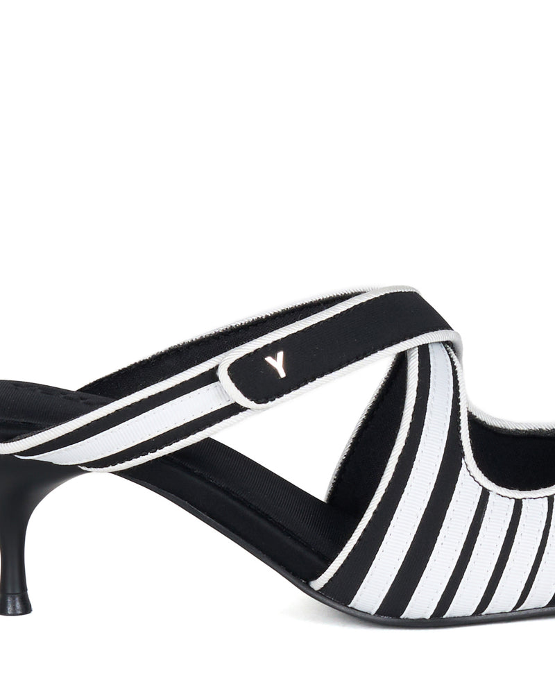 A strap design adds stability, allowing for a secure fit despite the mule silhouette.