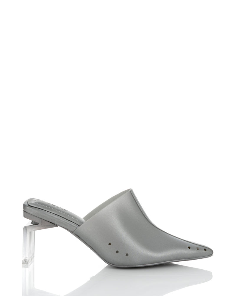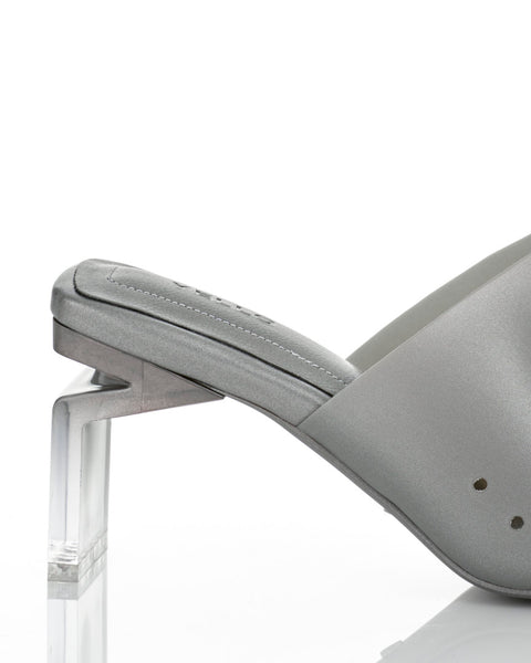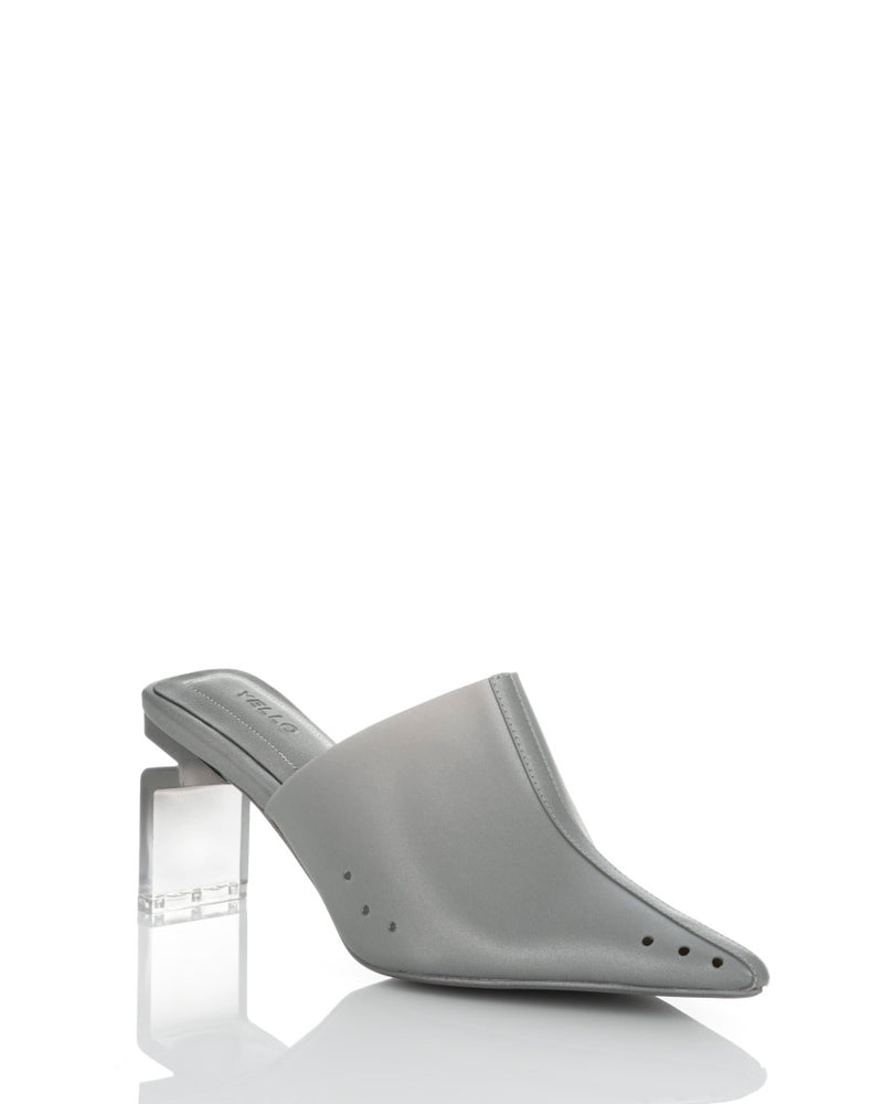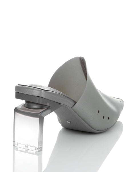 These clear mules with a striking gradient heel offer a sleek, fashion-forward look.