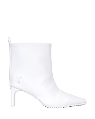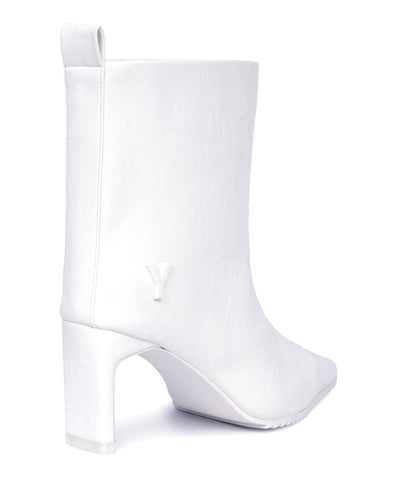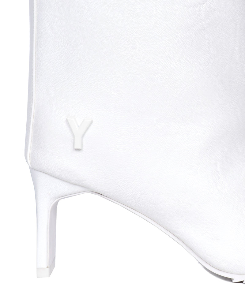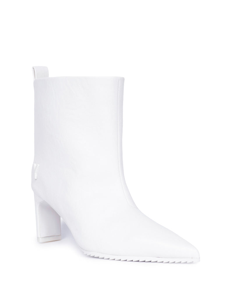 This season’s signature short boots feature a sleek, modern silhouette with a smart zip-free design. Made from high-quality PU material with a smooth finish, the sharp pointed toe adds elegance to every step. The wide shaft allows for pants-in styling while visually slimming the legs. Elevated by a 7cm heel, these boots provide a striking leg-lengthening effect. Available in four color options: classic black and white, plus black and brown with industrial-style eyelets for a bold twist. Shark soles flex with your stride, and flat heels offer stable support. From fall to spring, this pair adds refined drama to any outfit.
