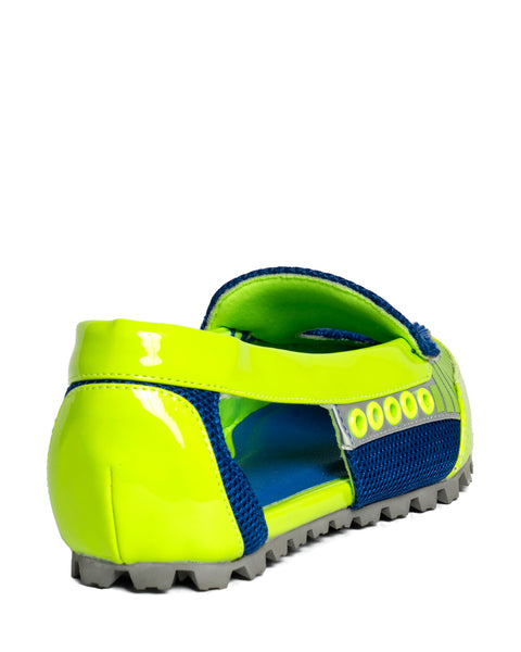 A unique flat shoe crafted from a mix of materials, transforming the typically simple flat silhouette into an edgy, intricate design. The soft tricot upper and low-resilience cushioned insole gently wrap the foot, while the flexible spiked sole ensures exceptional comfort with every step. A subtle front cutout adds a healthy, casual flair, complemented by stylish details like puffed TPU prints and side eyelets. Available in classic black and white, a futuristic silver, and striking combo colors that add a pop to any outfit. Perfect for barefoot wear or styled with socks or tights year-round.