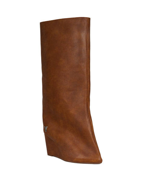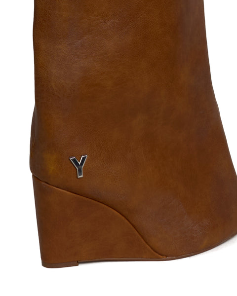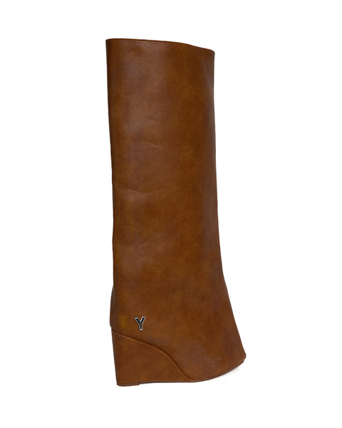 With a distinctive silhouette and striking design, these long boots make an unforgettable impression. The clean, straight shaft creates a beautiful vertical line that visually elongates the legs, making them appear slim and straight. Crafted from premium faux leather that’s almost indistinguishable from the real thing, the design is enhanced with a subtle vintage finish, while an iconic logo charm on the side adds a sophisticated accent. Despite their delicate appearance, the wedge heel ensures excellent stability and comfort, making them ideal for extended wear. A wide opening allows for easy pant-tucking, offering endless styling versatility. Available in black, camel, and brown, this pair’s sleek, linear silhouette delivers a unique, modern edge unlike anything else.
