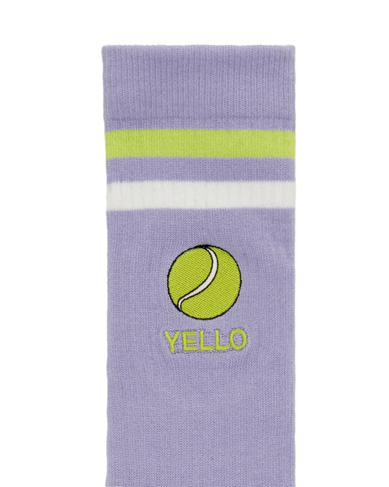 Crafted from premium ribbed knit, each pair features playful embroidered details—a ball motif and the YELLO logo—plus a woven logo on the footbed for an extra touch of style.
