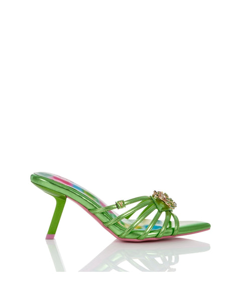 The 8cm heel and asymmetrical upper line make your bare feet look beautiful, and the printing on the insole that boost your mood.