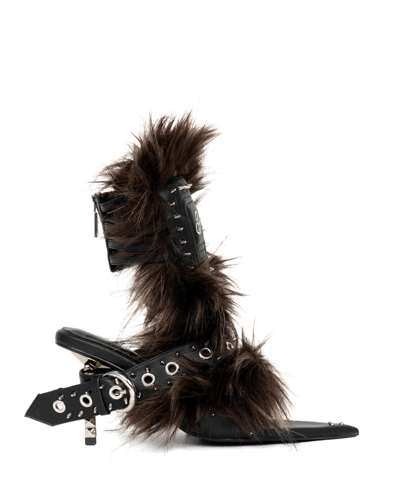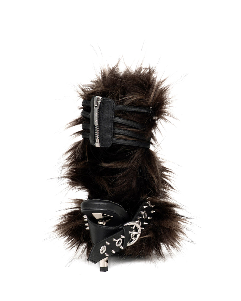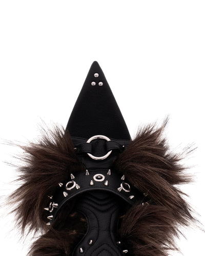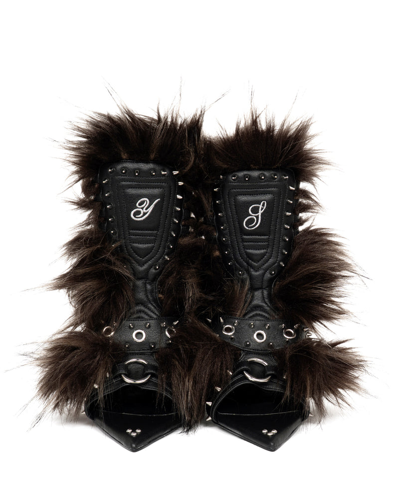 A glamorous fur mule with a luxurious feel has arrived. YELLO’s signature design pairs a sleek mule silhouette with voluminous faux fur, elevated with bold stud detailing for an edgy finish. The distinctive 8.1cm heel adds a refined touch, while the pointed toe elongates the leg line. A back zipper ensures a secure and comfortable fit. The front is accented with delicate embroidery of the letters “Y” and “S,” lending a sophisticated flair. Perfect for parties, or even styling with casual denim. Available in black, camel, and gray—each adds a sophisticated twist to everyday styling.