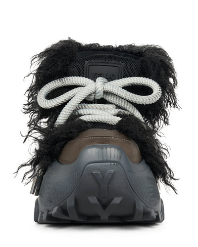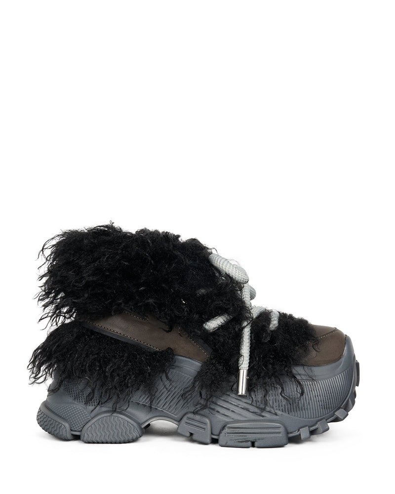 These platform boots make a bold statement with their voluminous faux fur, instantly catching the eye and adding dramatic presence to any look. The thick 7.6cm original sole — designed for both height and stability — contrasts beautifully with the playful softness of the fur, enhancing the boots’ modern, fashion-forward appeal. Plush cushioning gently wraps the foot for exceptional comfort, while chunky laces allow you to customize the fit. A mix of materials centered around the fur adds depth to the design, complemented by sporty side stripes that bring a dynamic edge. Available in black, charcoal, blue × beige, and yellow × navy, this iconic pair blends playful color combinations with refined design, elevating your seasonal style with ease.