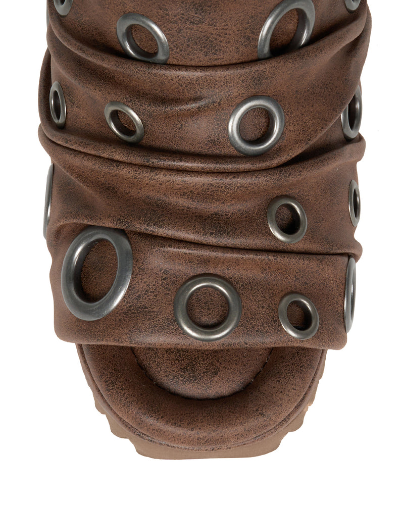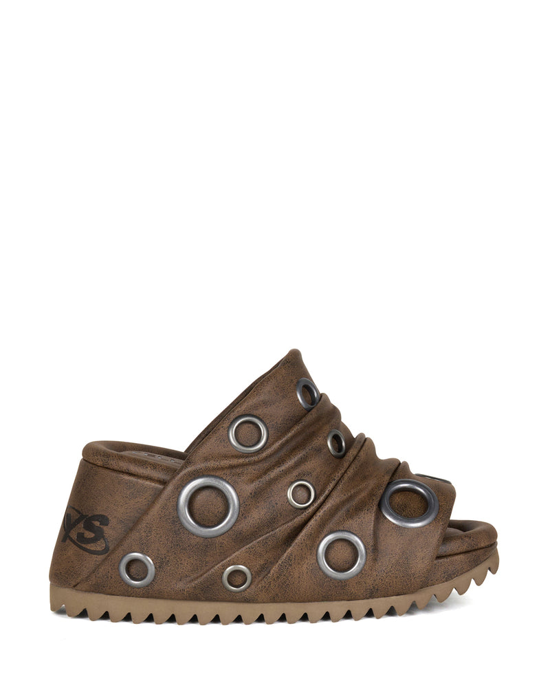 A sandal defined by bold eyelet detailing that balances ruggedness with an effortless, airy feel.