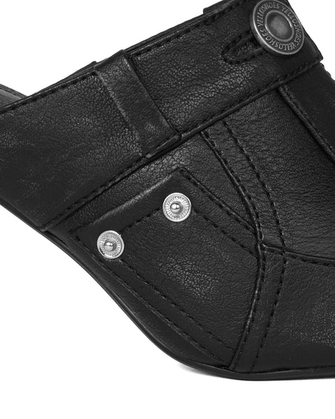 Introducing a refined mule that incorporates pant-inspired details for a sleek, sophisticated mood.