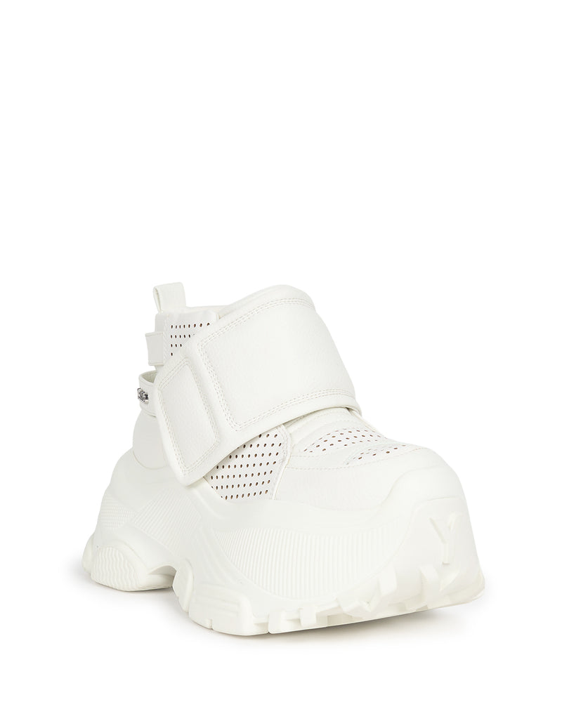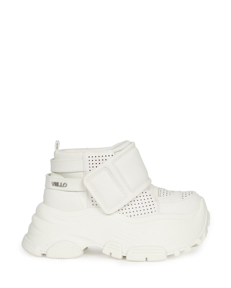 These platform short boots make a bold impression with their chunky sole and rugged, industrial-inspired silhouette. The signature platform — measuring approximately 7.6cm — delivers a powerful leg-lengthening effect, while a wide Velcro strap makes them easy to slip on and off. Perforated and stitched detailing across the upper adds depth and structure, balancing the bold shape with a refined finish. Choose from three colors: black, white, or statement brown, finished with dramatic studs and piercings. The brown pair is crafted with a hand-aged sole, giving it a distinctive, vintage-inspired character. Edgy yet versatile, this standout style adds instant attitude to any look.
