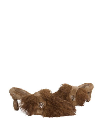 This adorable mule and leg warmer set is all about playful luxury, wrapped in plush faux fur for an irresistibly cute look. The soft, thick fur gently cocoons your feet, while the rounded toe adds a touch of feminine charm. Voluminous leg warmers smooth over the leg line and, combined with the 7.7cm heel, create a beautifully elongated silhouette. Two types of ultra-soft faux fur are used to add depth and dimension through contrasting textures. The removable leg warmers allow you to style the pair in multiple ways, adapting to different looks and occasions. A statement piece that brings a touch of luxury to any outfit, starting from the feet up.